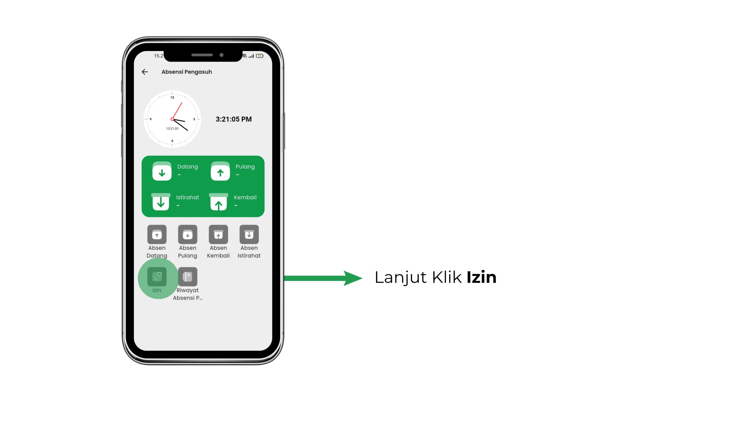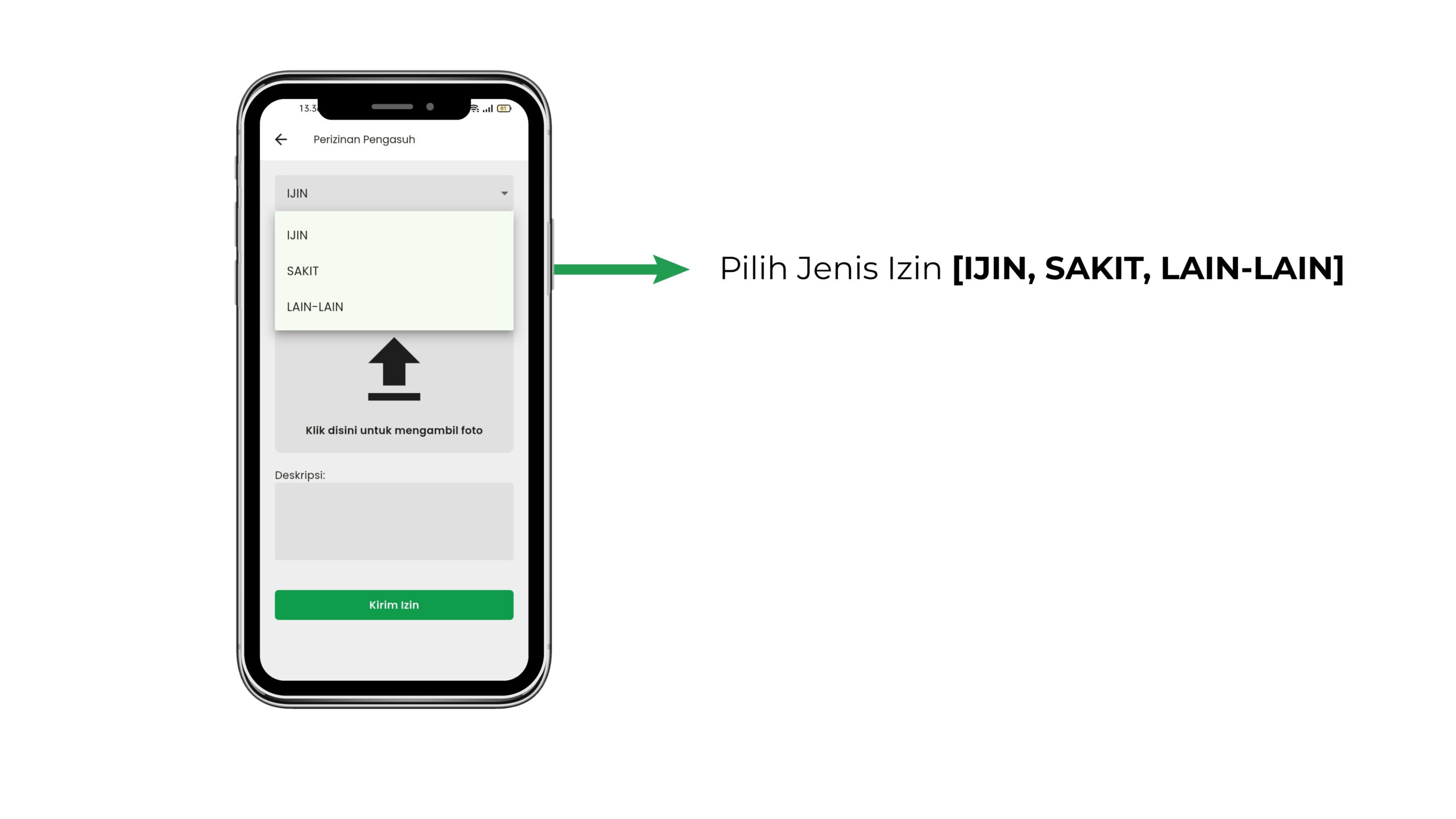 - Pilih Jenis Izin [IJIN, SAKIT, LAIN-LAIN]